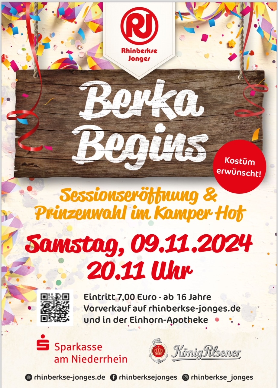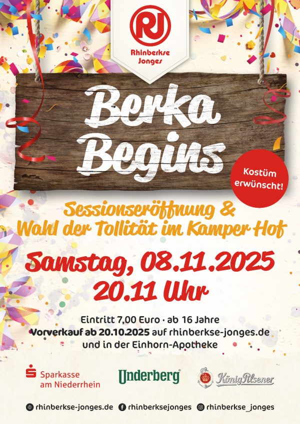 Eintrittskarte für “Berka begins” am Samstag, 08.11.2025|20:00 Uhr im Kamper Hof.